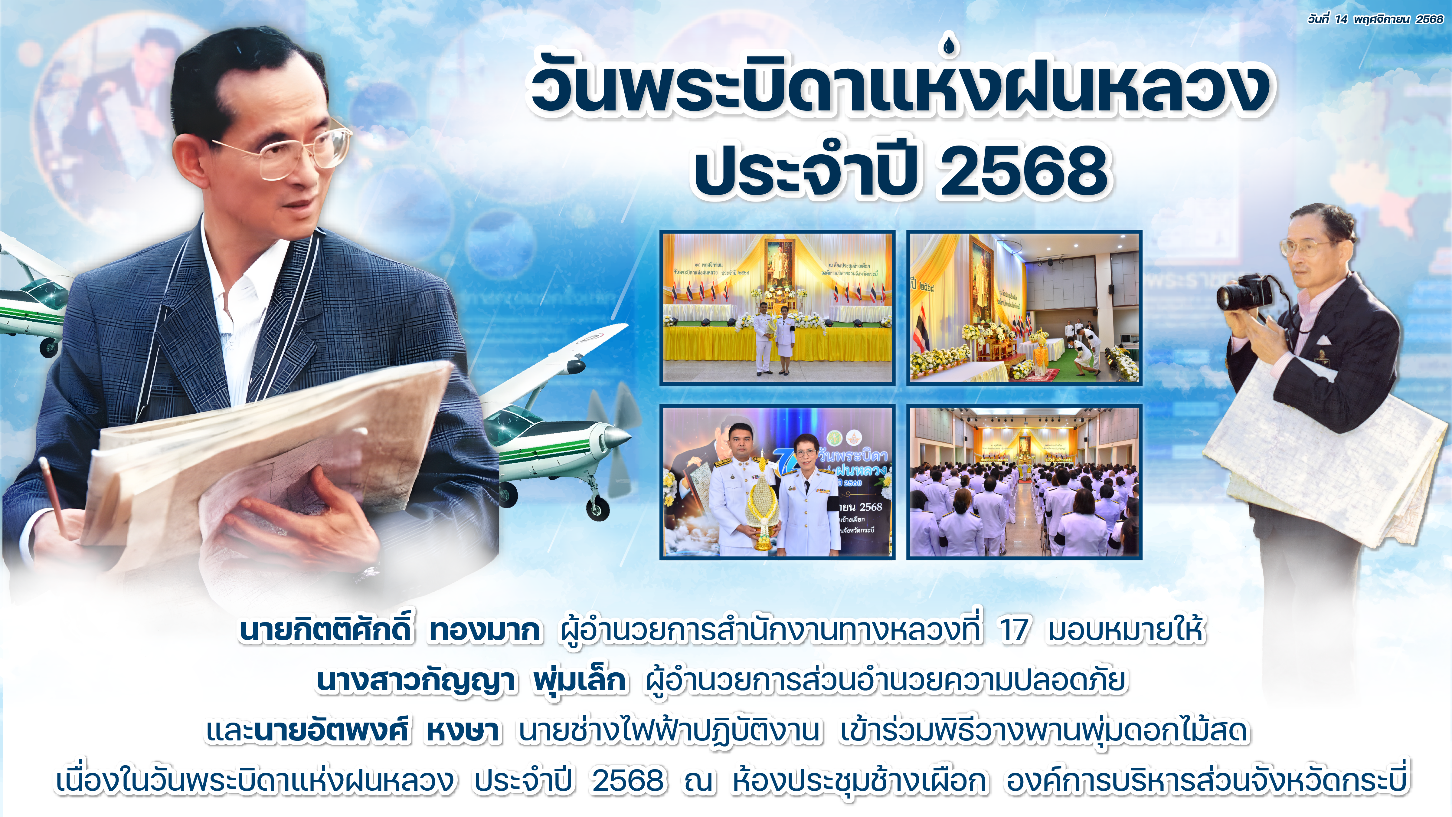 วันพระบิดาแหงฝนหลวง ประจำปี 2568 วันที่ 14 พฤศจิกายน 2568