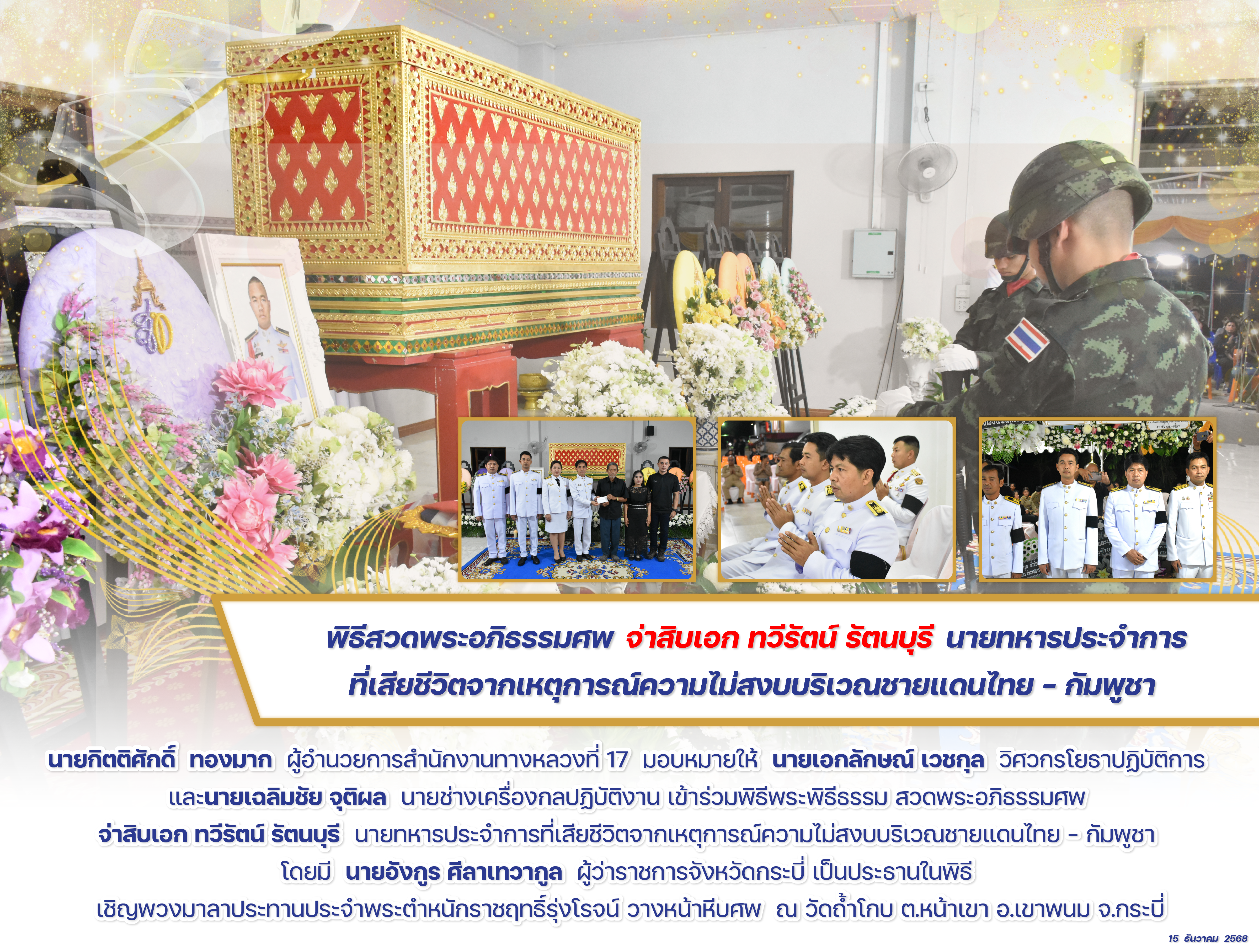 พิธีสวดพระอภิธรรมศพ จ่าสิบเอก ทวีรัตน์ รัตนบุรี นายทหารประจำการที่เสียชีวิตจากเหตุการณ์ความไม่สงบบริเวณชายแดนไทย – กัมพูชา 15 ธันวาคม 2568