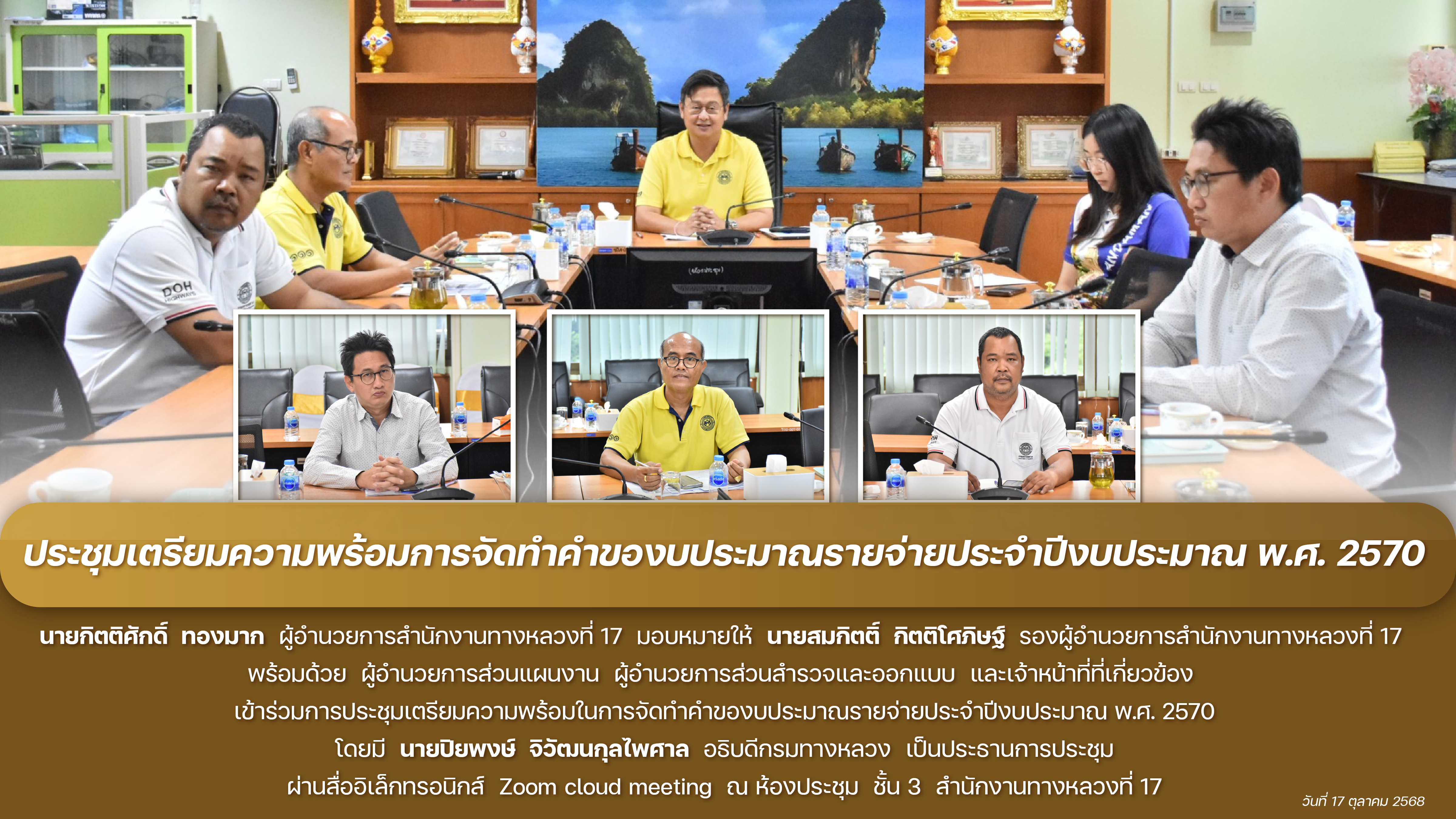 ประชุมเตรียมความพร้อมการจัดทำคำของบประมาณรายจ่ายประจำปีงบประมาณ พ.ศ. 2570 วันที่ 17 ตุลาคม 2568