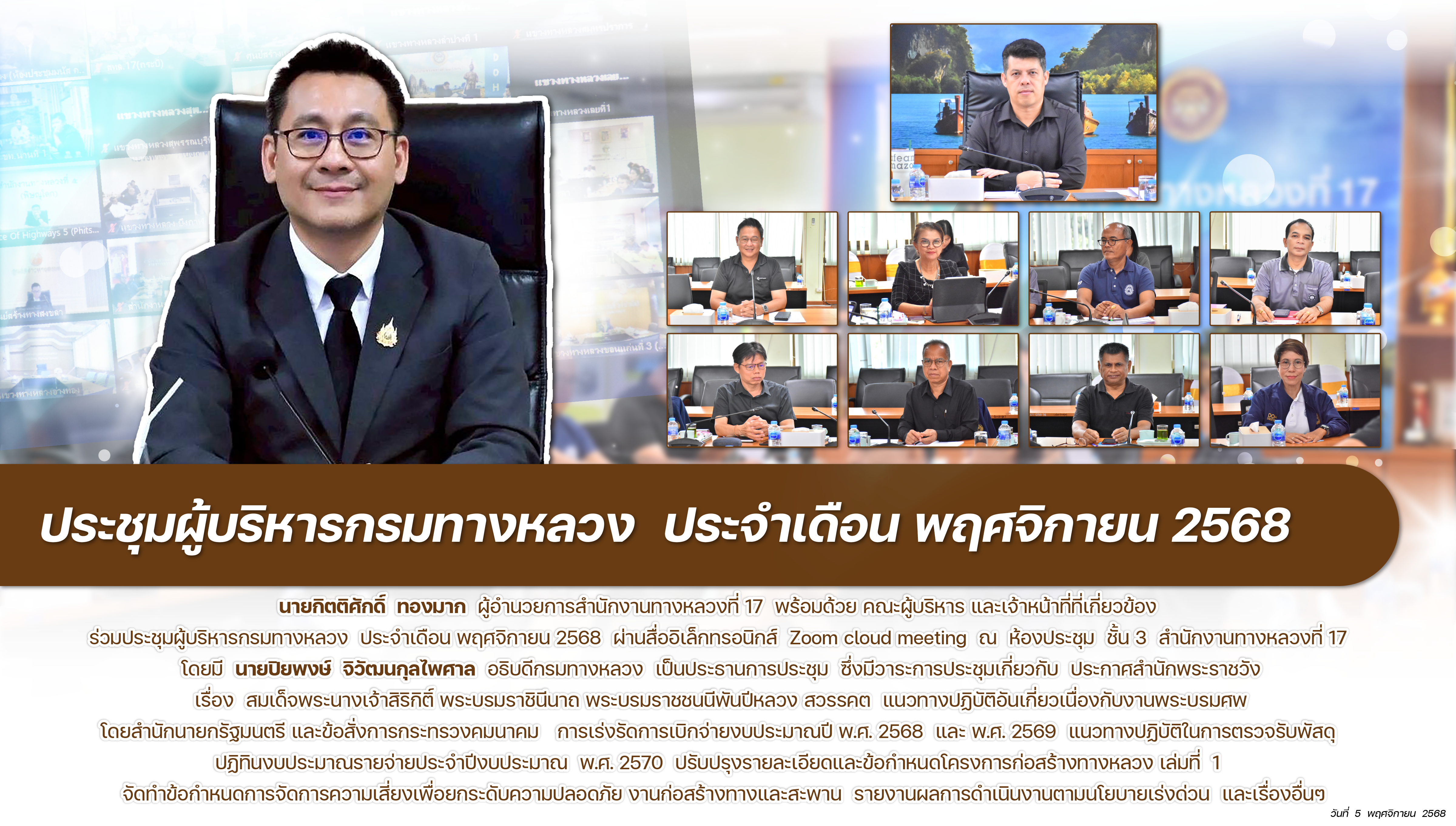 ประชุมผู้บริหารกรมทางหลวง ประจำเดือน พฤศจิกายน 2568 วันที่ 5 พฤศจิกายน 2568