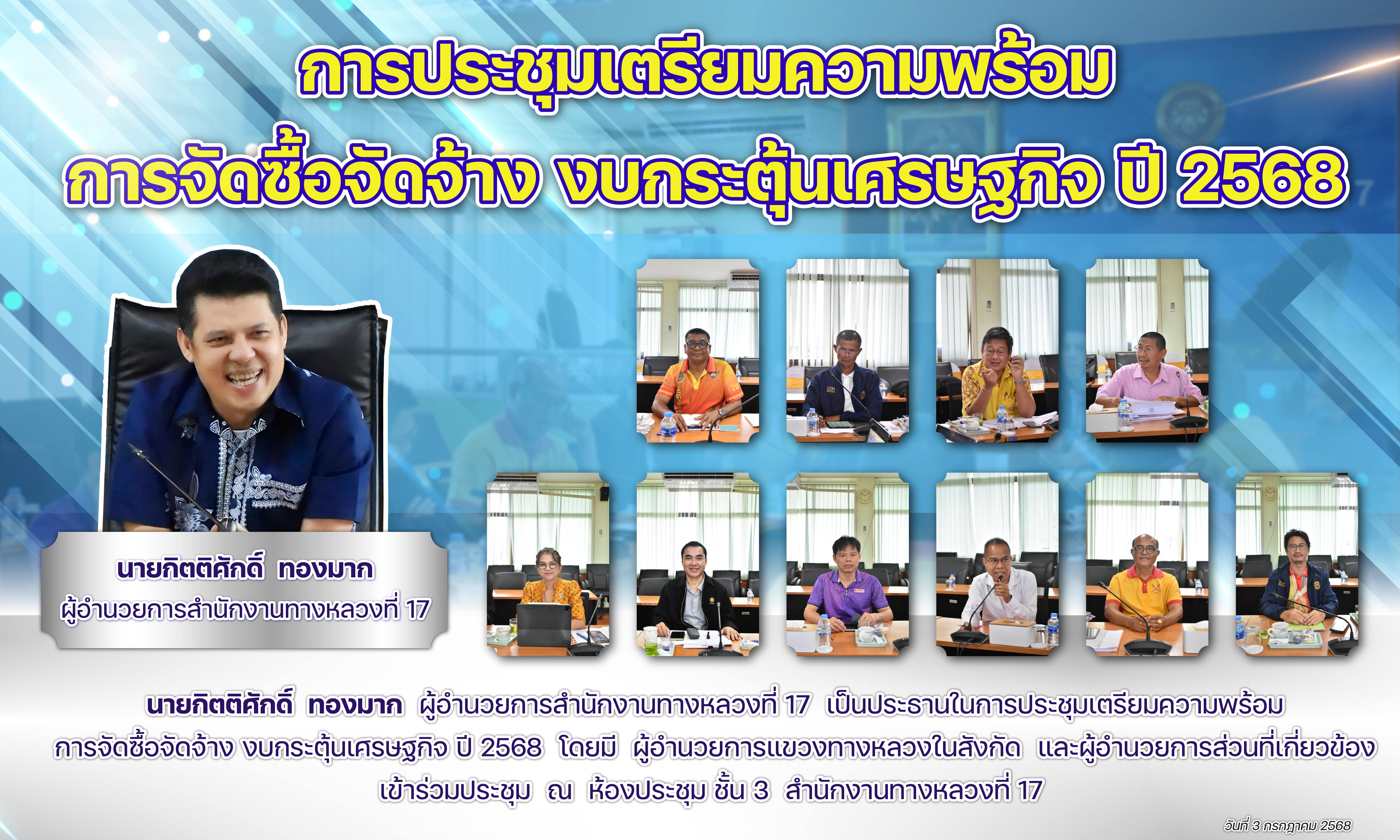 60 05/07/2568 การประชุมเตรียมความพร้อม การจัดซื้อจัดจ้าง งบกระตุ้นเศรษฐกิจ ปี 2568 วันที่ 3 กรกฎาคม 2568