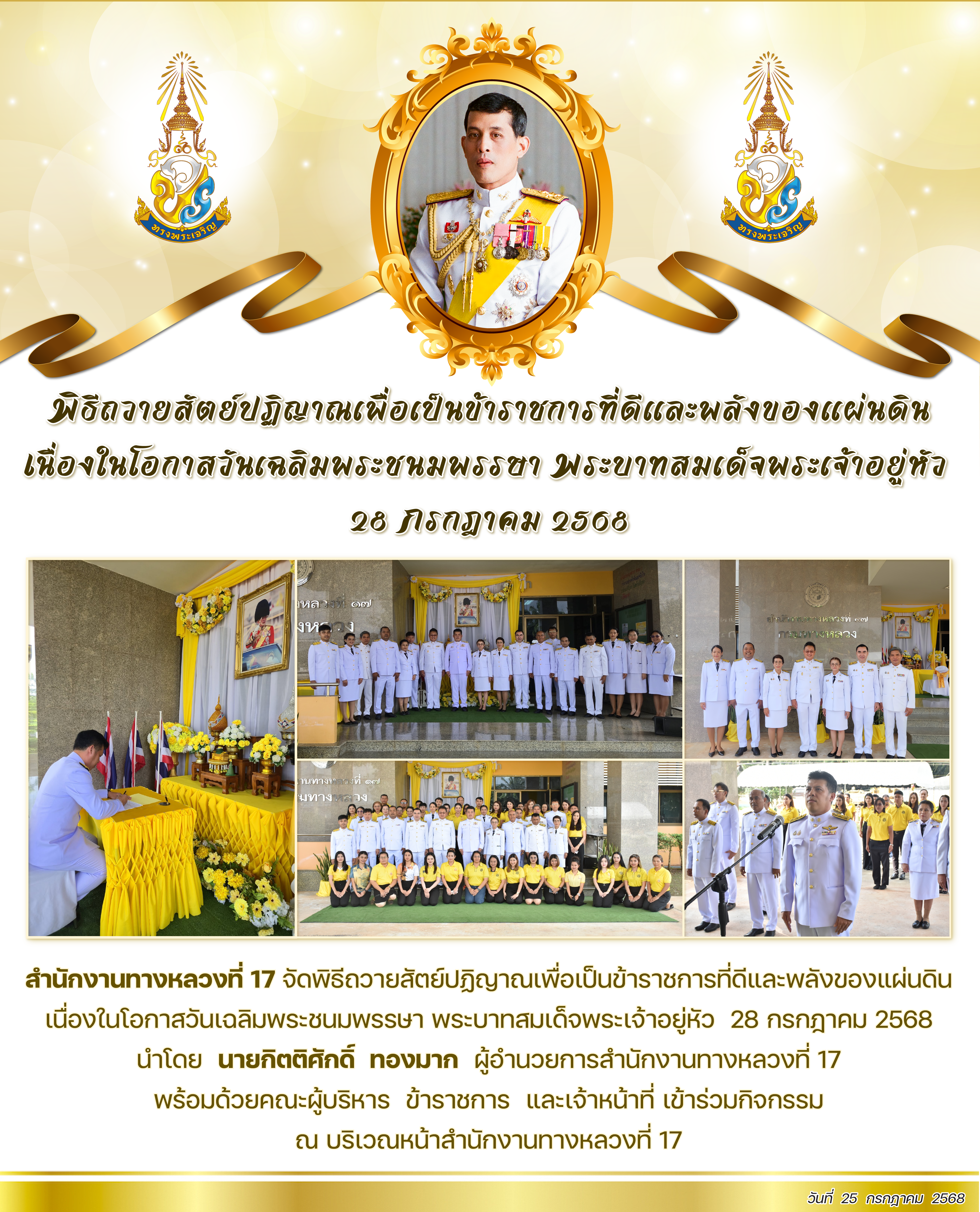 58 27/07/2568 พิธีถวายสัตย์ปฏิญาณเพื่อเป็นข้าราชการที่ดีและพลังของแผ่นดิน เนื่องในโอกาสวันเฉลิมพระชนมพรรษา พระบาทสมเด็จพระเจ้าอยู่หัว 28 กรกฎาคม 2568