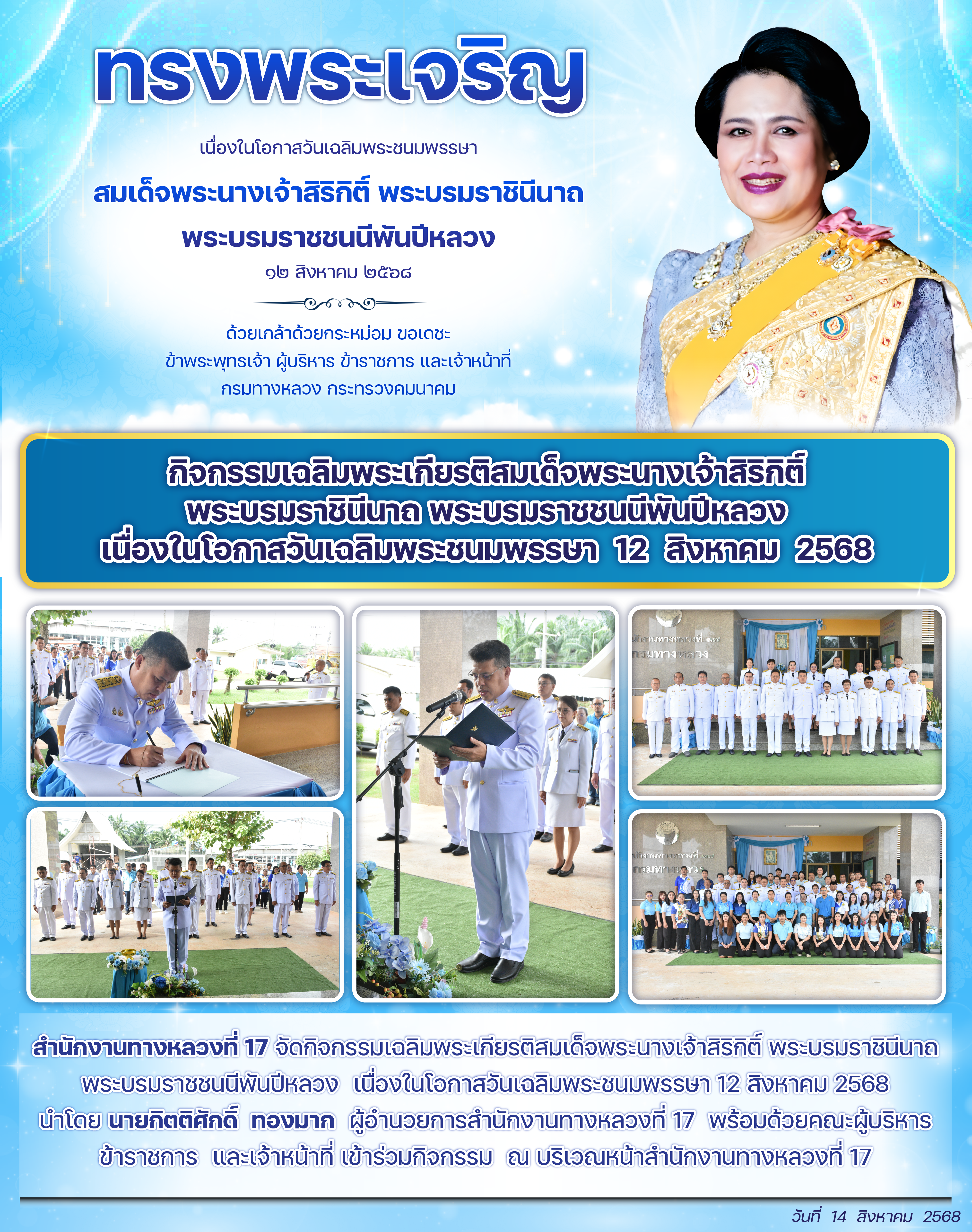53 15/08/2568 กิจกรรมเฉลิมพระเกียรติสมเด็จพระนางเจ้าสิริกิติ์ พระบรมราชินีนาถ พระบรมราชชนนีพันปีหลวง เนื่องในโอกาสวันเฉลิมพระชนมพรรษา 12 สิงหาคม 2568 วันที่ 14 สิงหาคม 2568