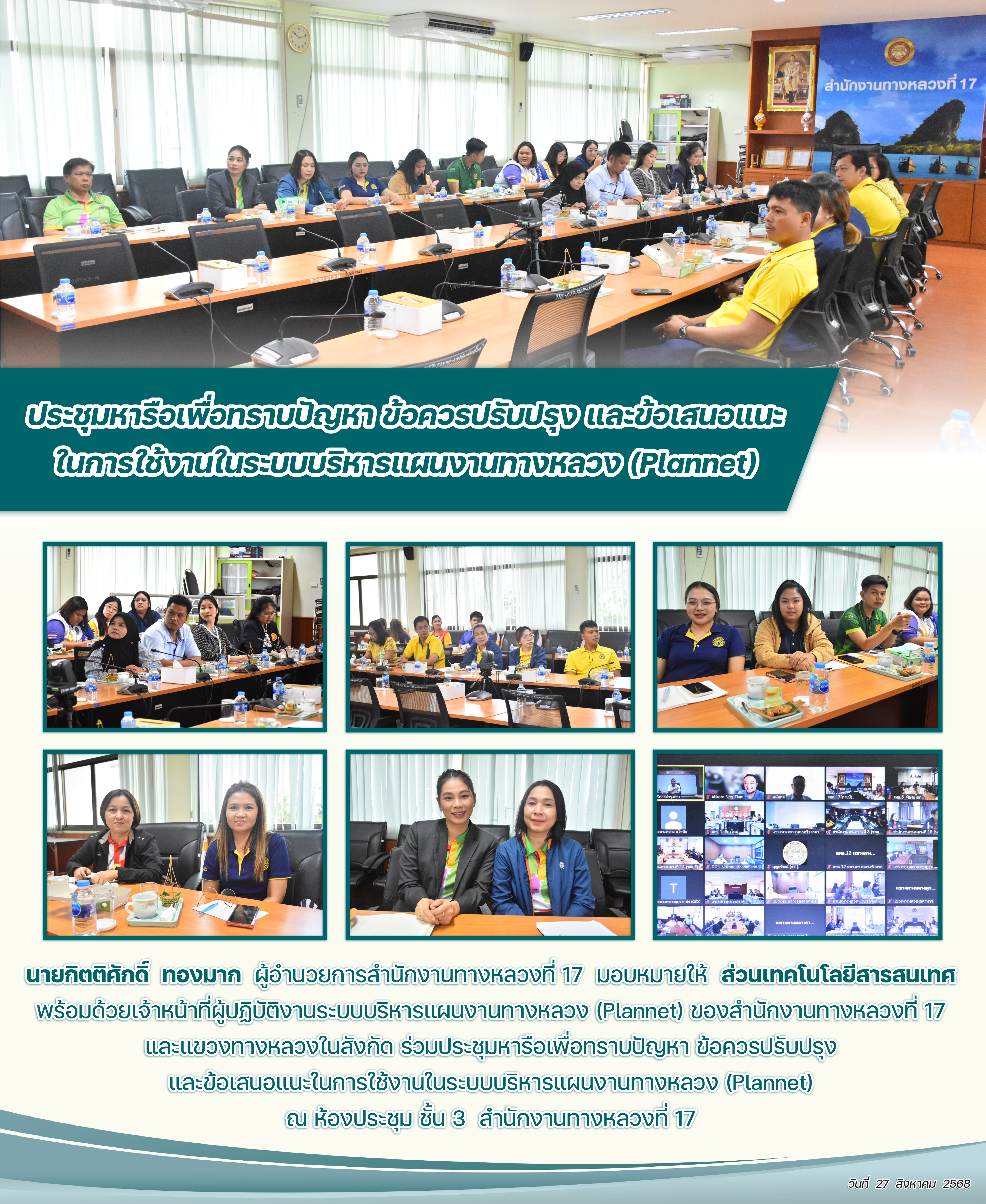 49 27/08/2568 ประชุมหารือเพื่อทราบปัญหา ข้อควรปรับปรุง และข้อเสนอแนะ ในการใช้งานในระบบบริหารแผนงานทางหลวง (Plannet) วันที่ 27 สิงหาคม 2568