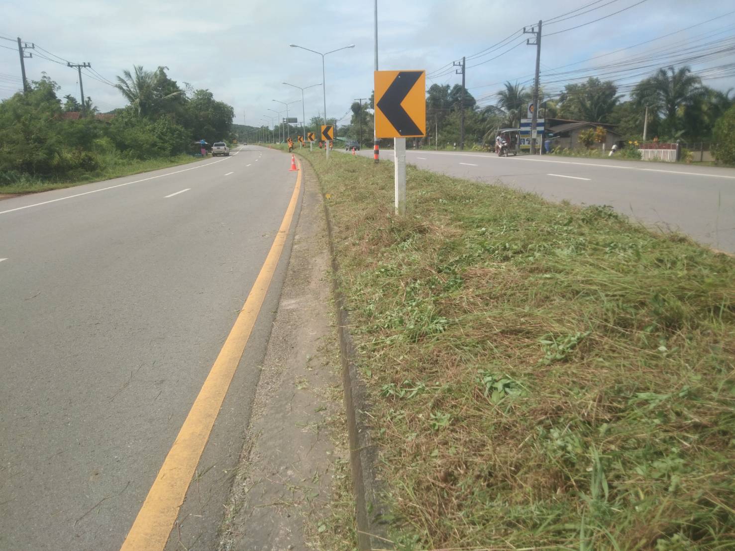 หมวดทางหลวงระนอง ดำเนินงานตัดหญ้าเกาะกลาง