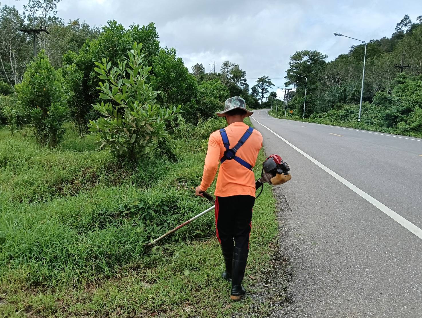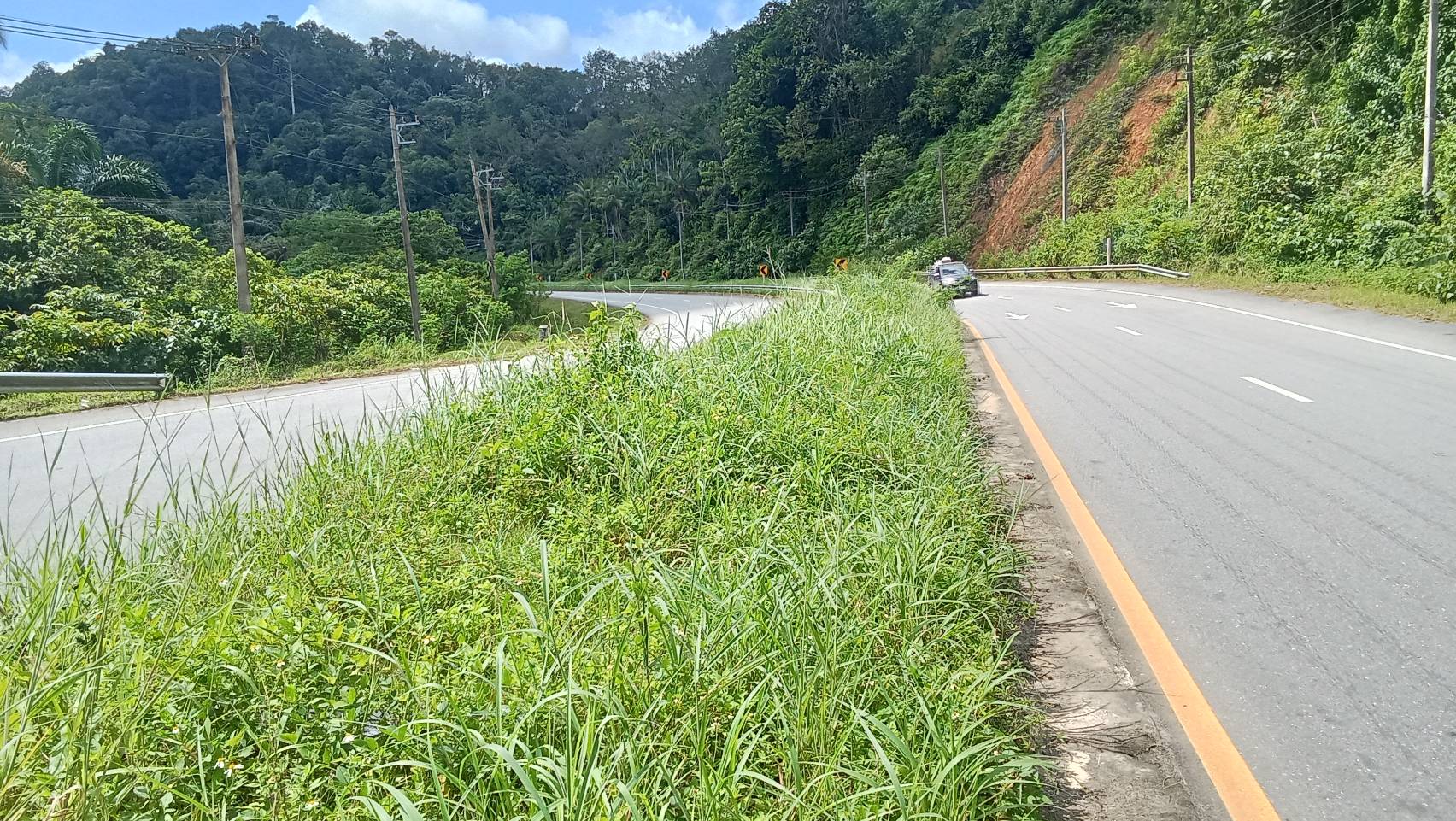 หมวดทางหลวงพะโต๊ะ ดำเนินการตัดหญ้า ไหล่ทาง ทล.4006 ตอน ราชกรูด - วังตะกอ กม.0+000 - กม.3+000