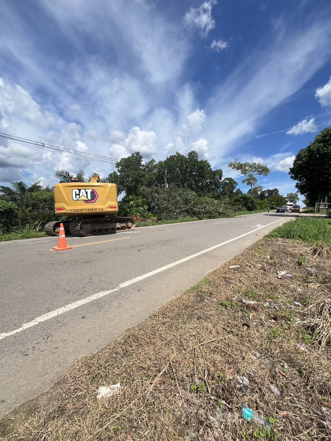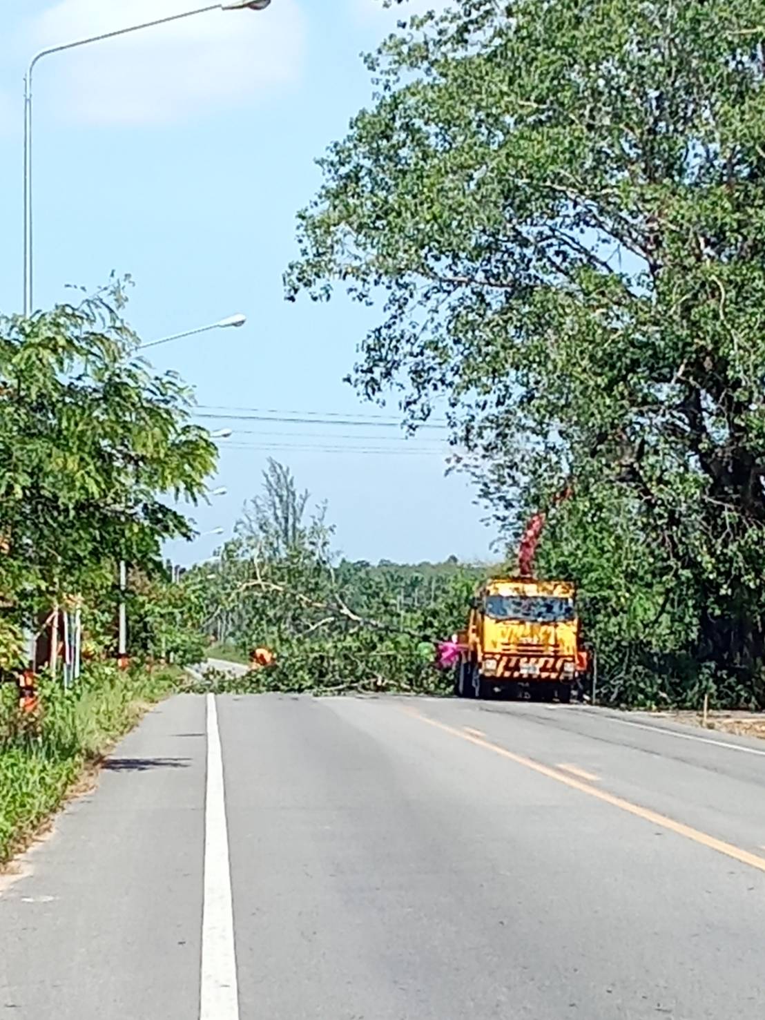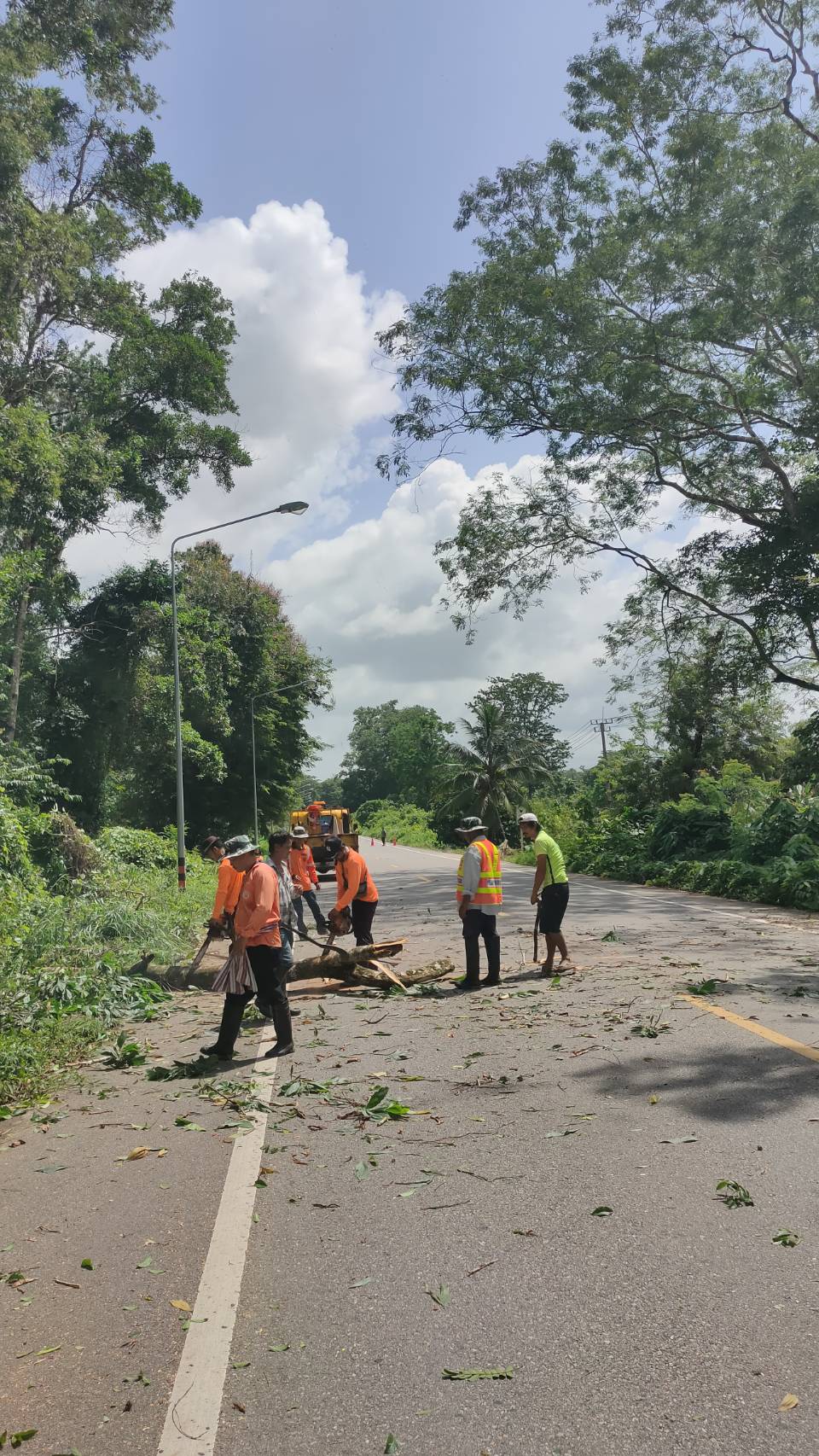 หมวดทางหลวงกะเปอร์ ดำเนินงานตัดต้นไม้ในเขตทาง