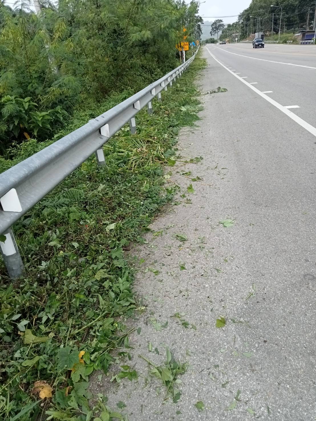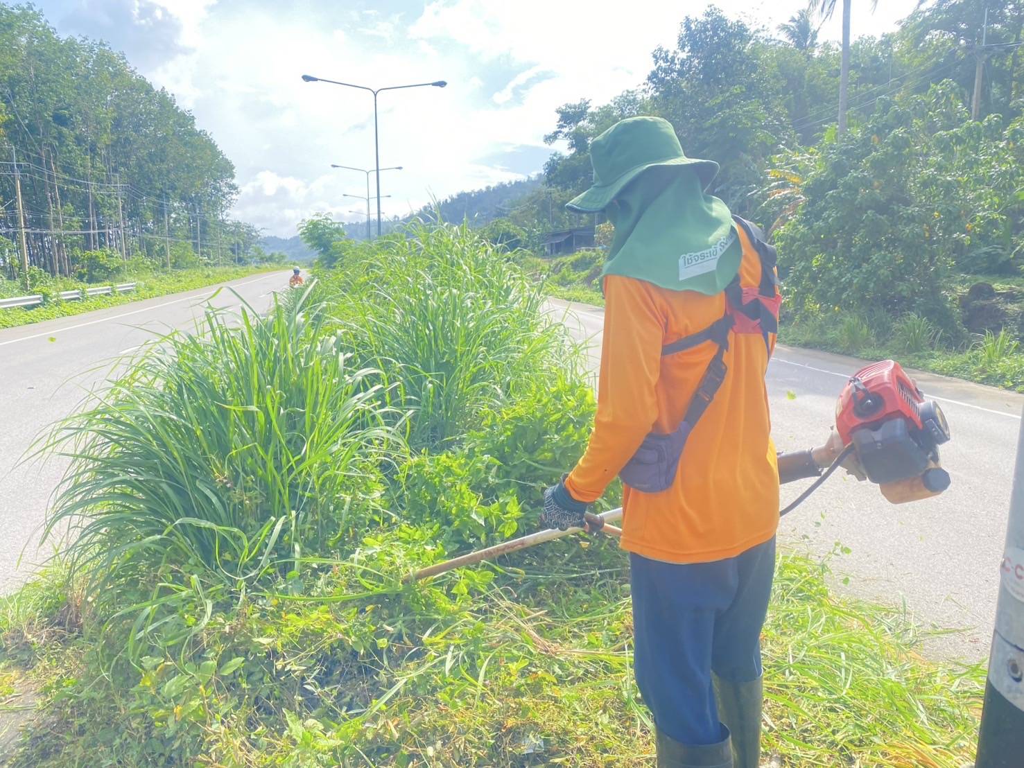 หมวดทางหลวงกะเปอร์ ดำเนินงานตัดหญ้าไหล่ทาง