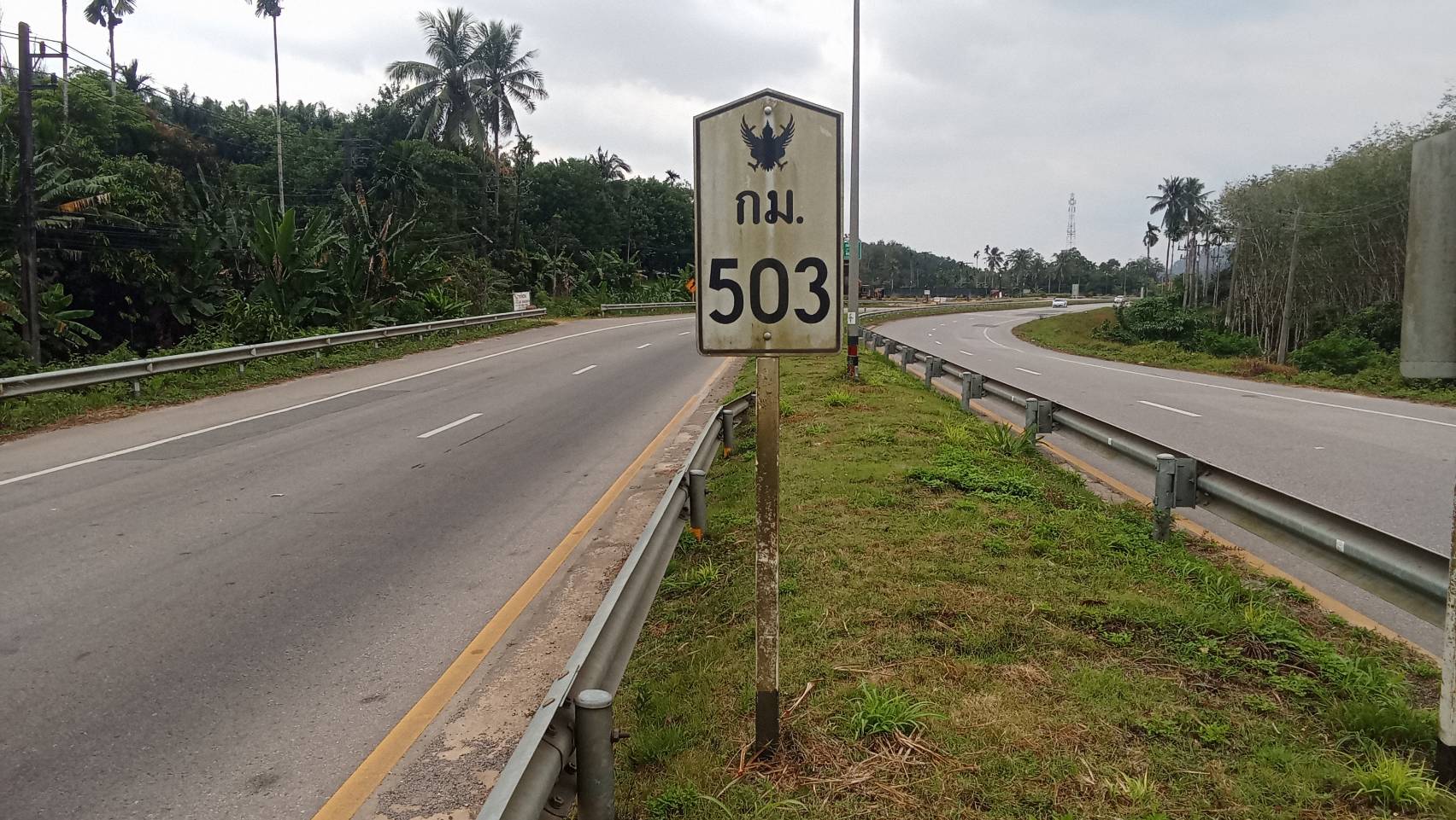 งานอำนวยความปลอดภัย ดำเนินการติดตั้งหลักล้มลุก ทล.4 ตอน กระบุรี - หงาว กม.595+500