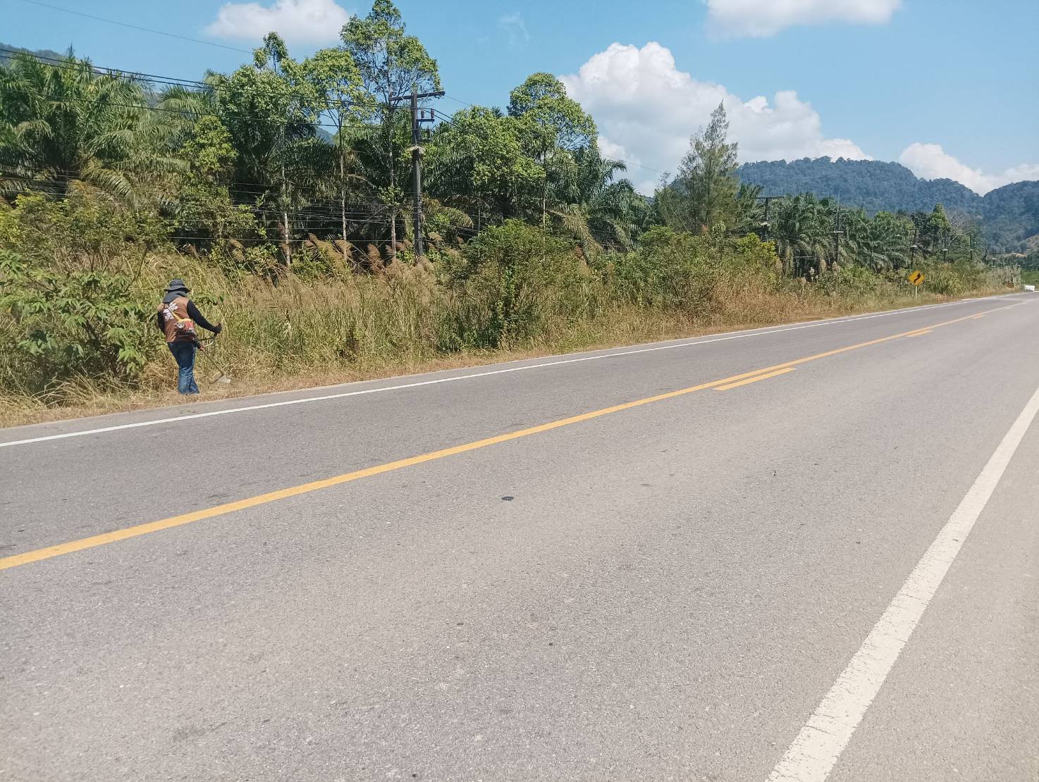 หมวดทางหลวงพะโต๊ะ ดำเนินงานตัดหญ้าไหล่ทาง