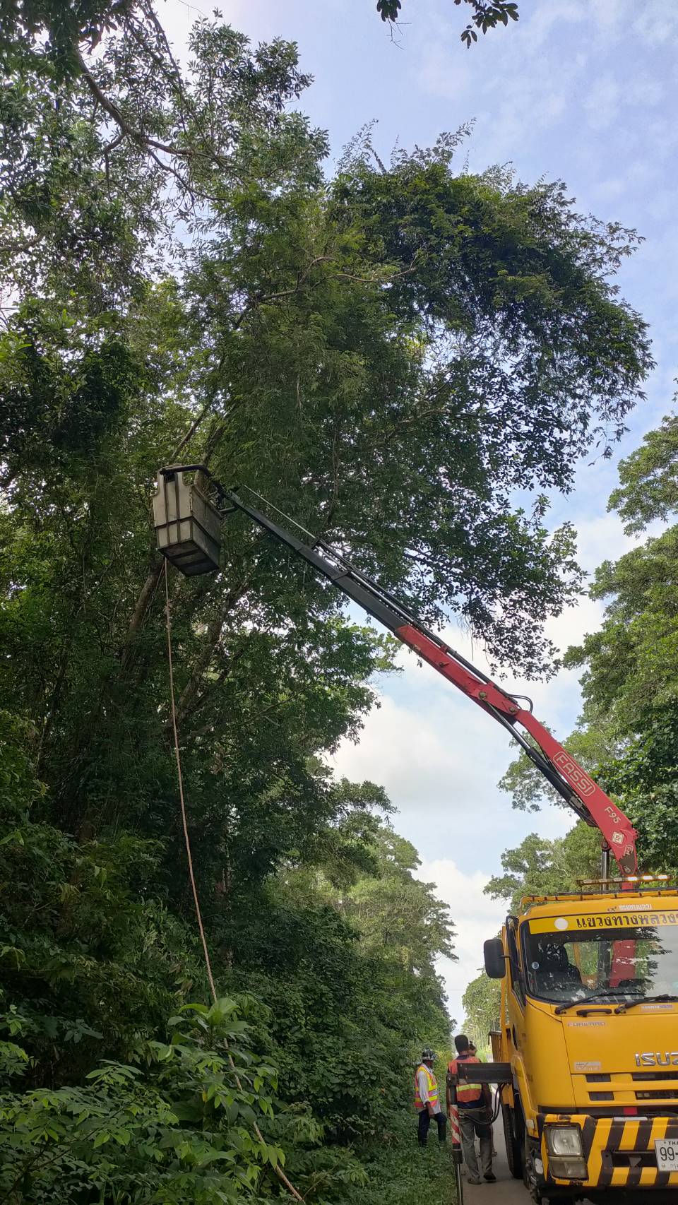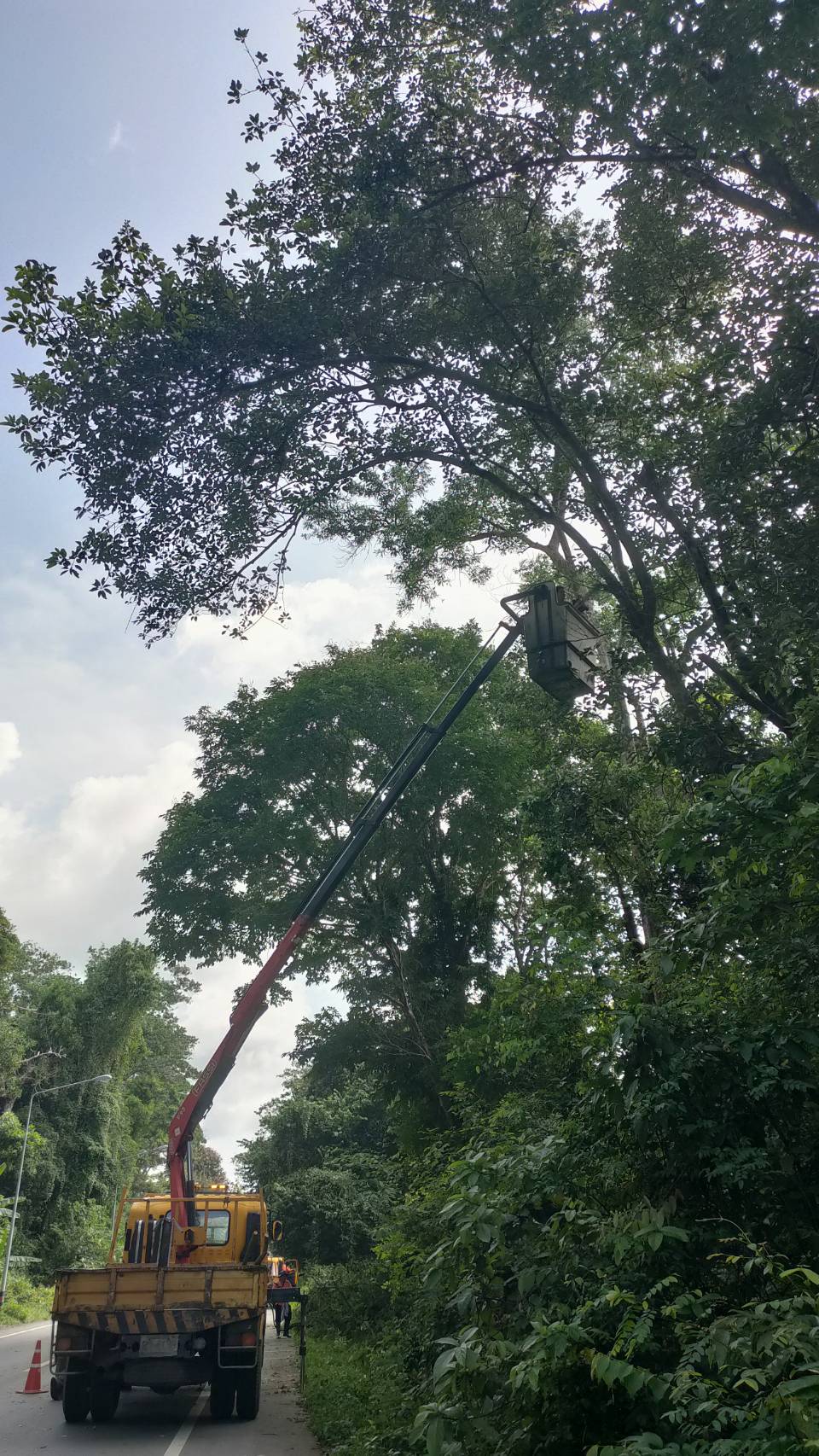 หมวดทางหลวงกะเปอร์ ดำเนินงานตัดต้นไม้ในเขตทาง