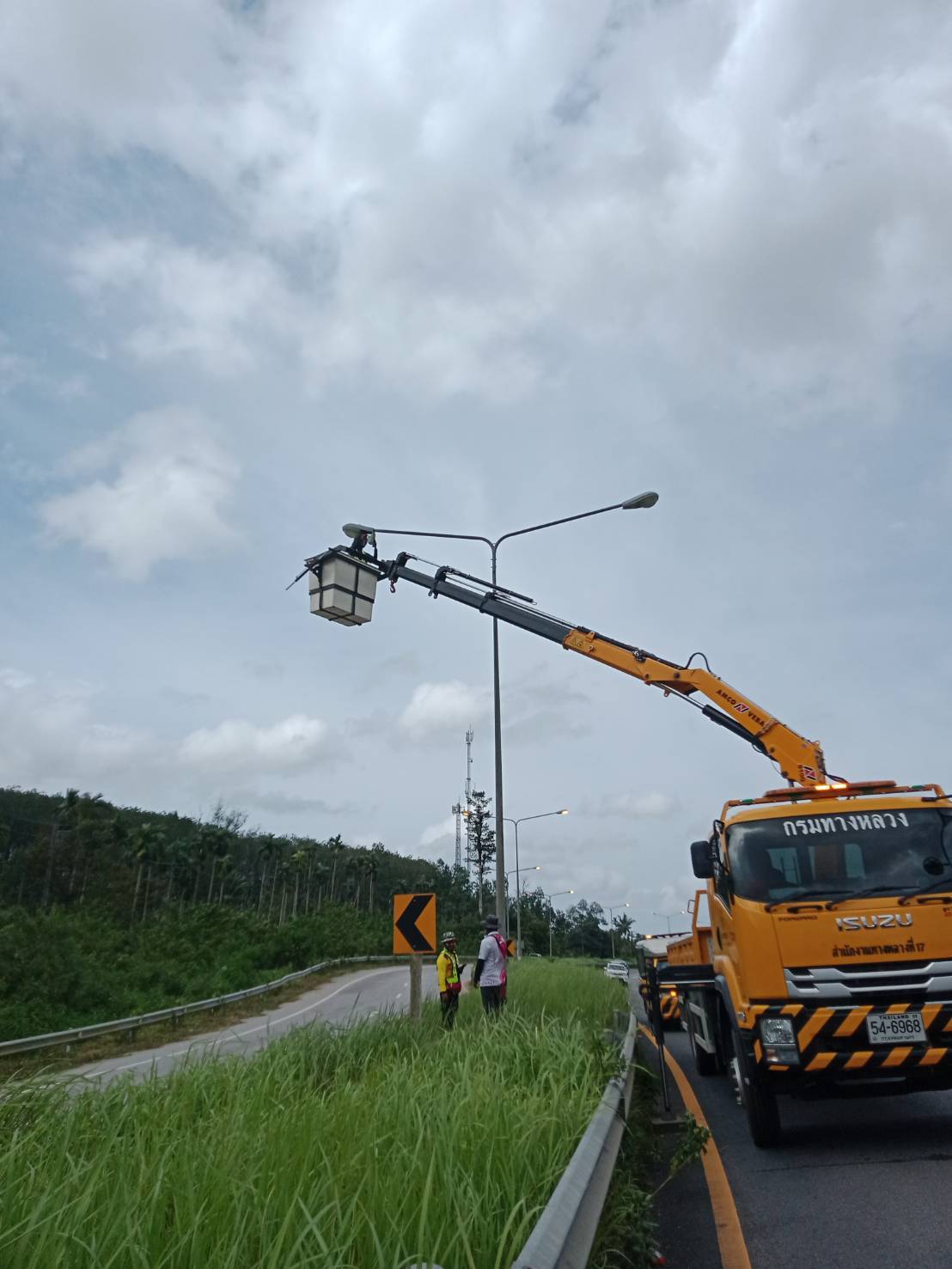 เข้าดำเนินการซ่อมแซมไฟฟ้าแสงสว่าง บนทางหลวงหมายเลข 4