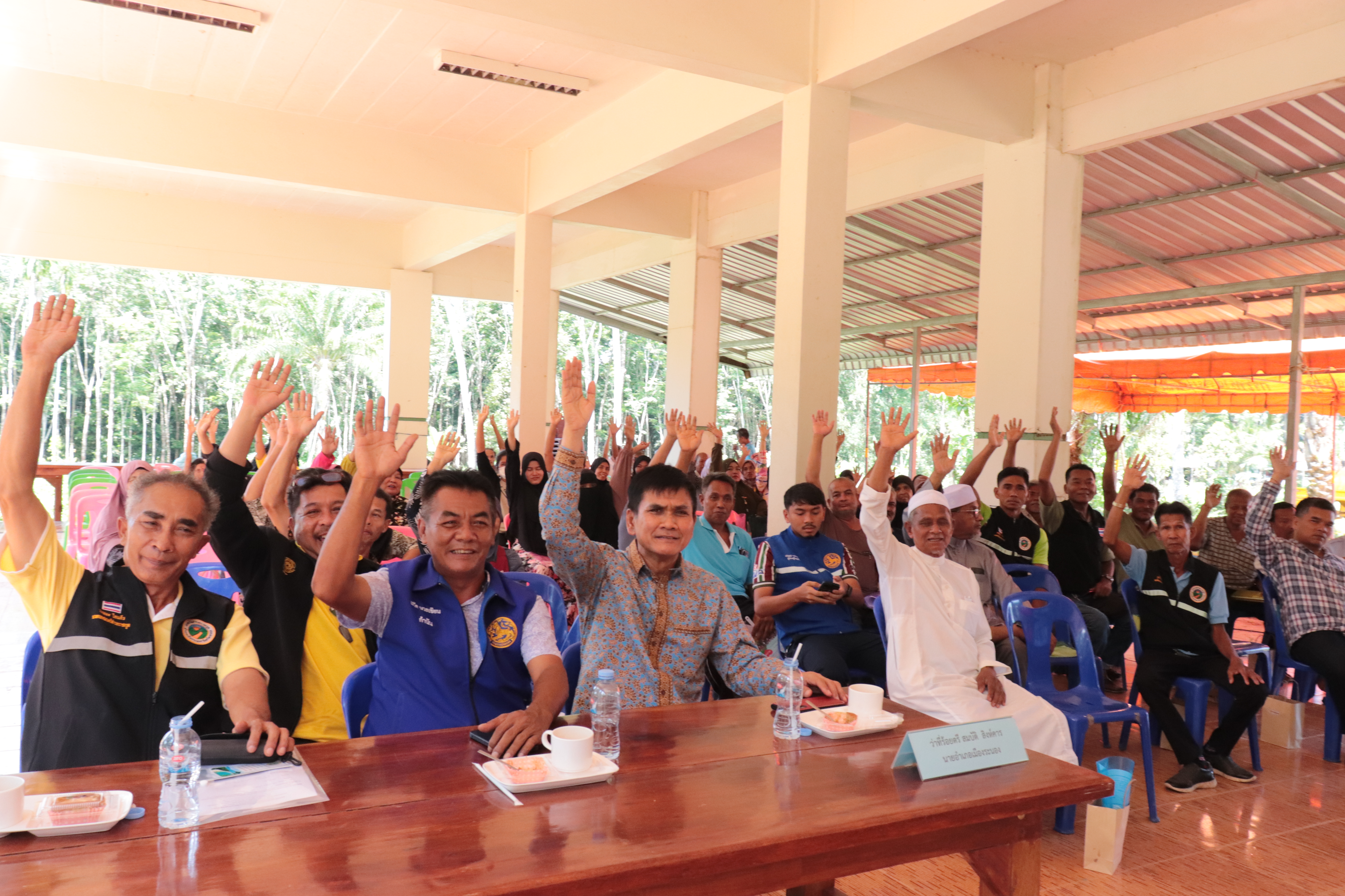 นายวรรณะ ใยแก้ว นายกเทศมนตรีตำบลราชกรูด และผู้นำท้องถิ่น ร่วมประชุมการมีส่วนร่วมของประชาชน