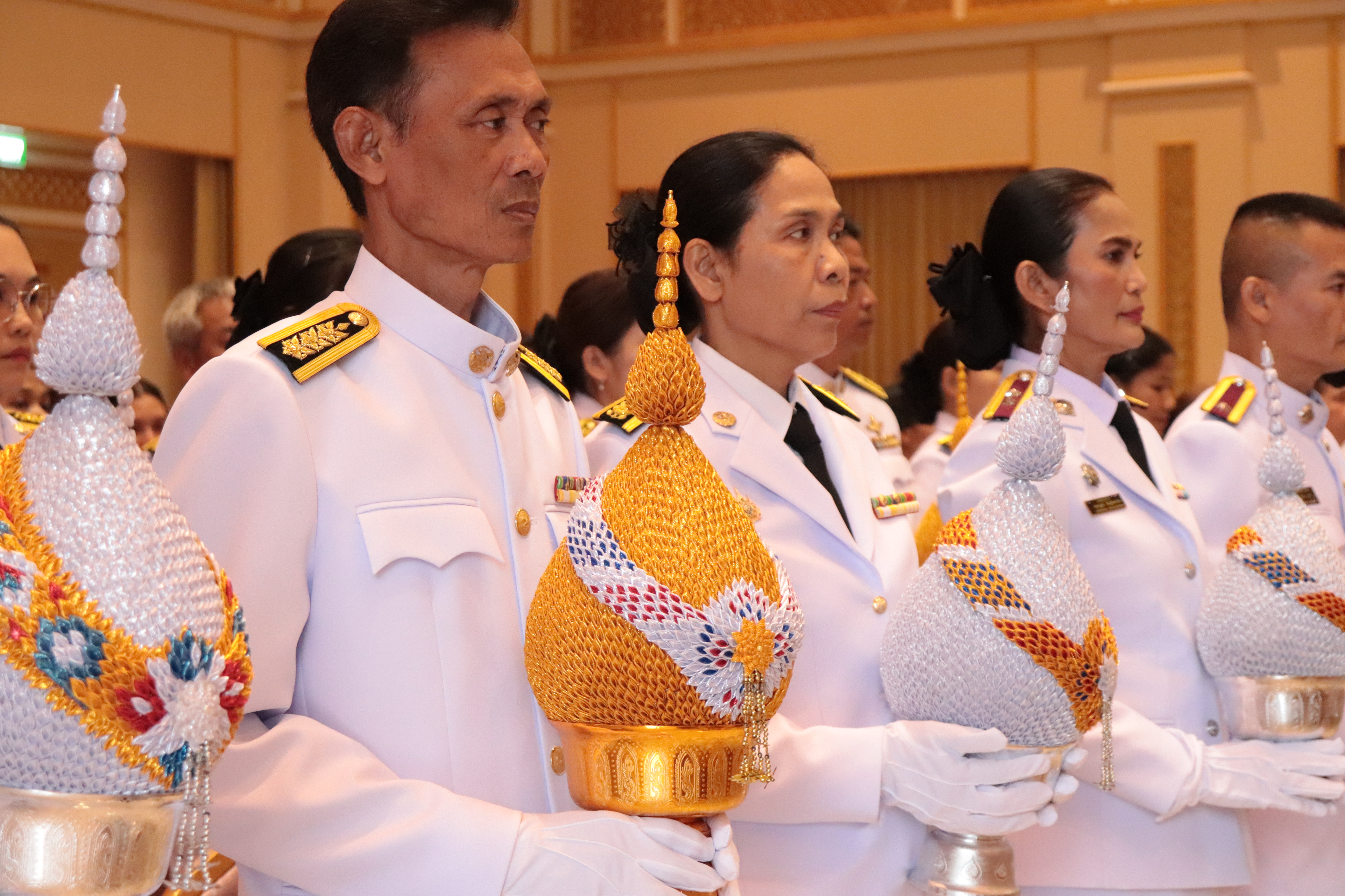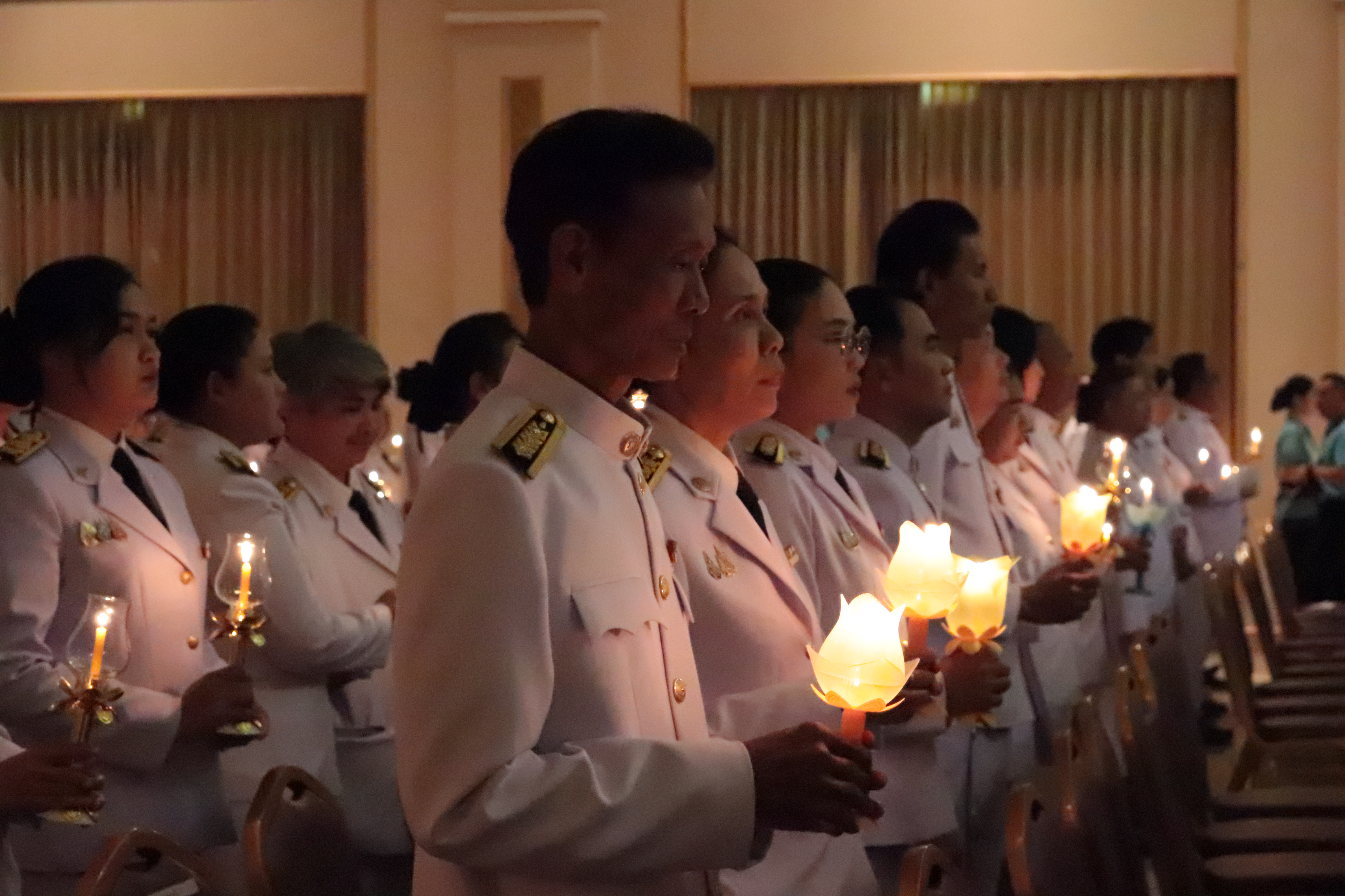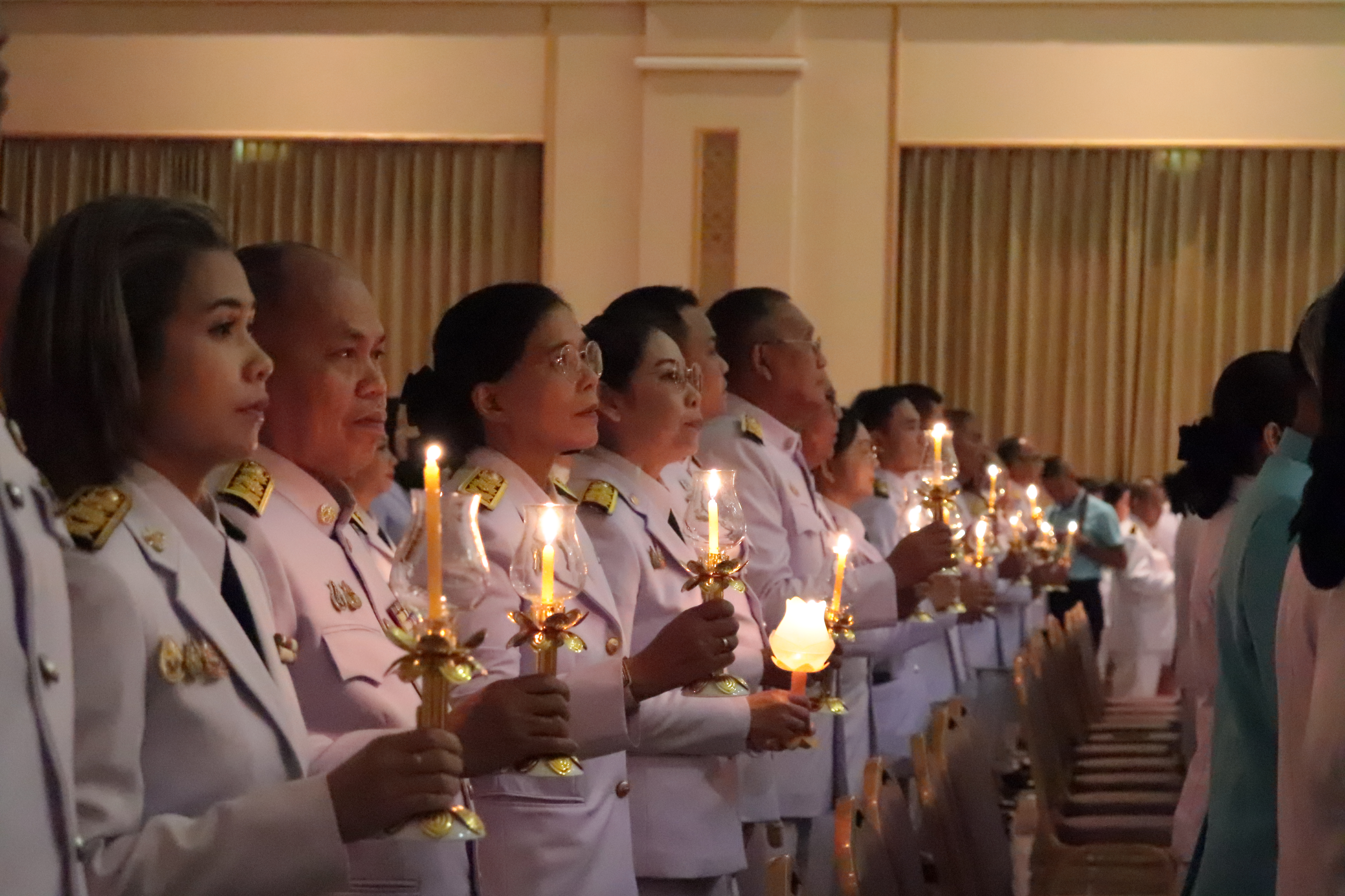 ร่วมพิธีถวายเครื่องราชสักการะ วางพานพุ่ม และพิธีจุดเทียนถวายพระพรชัยมงคล