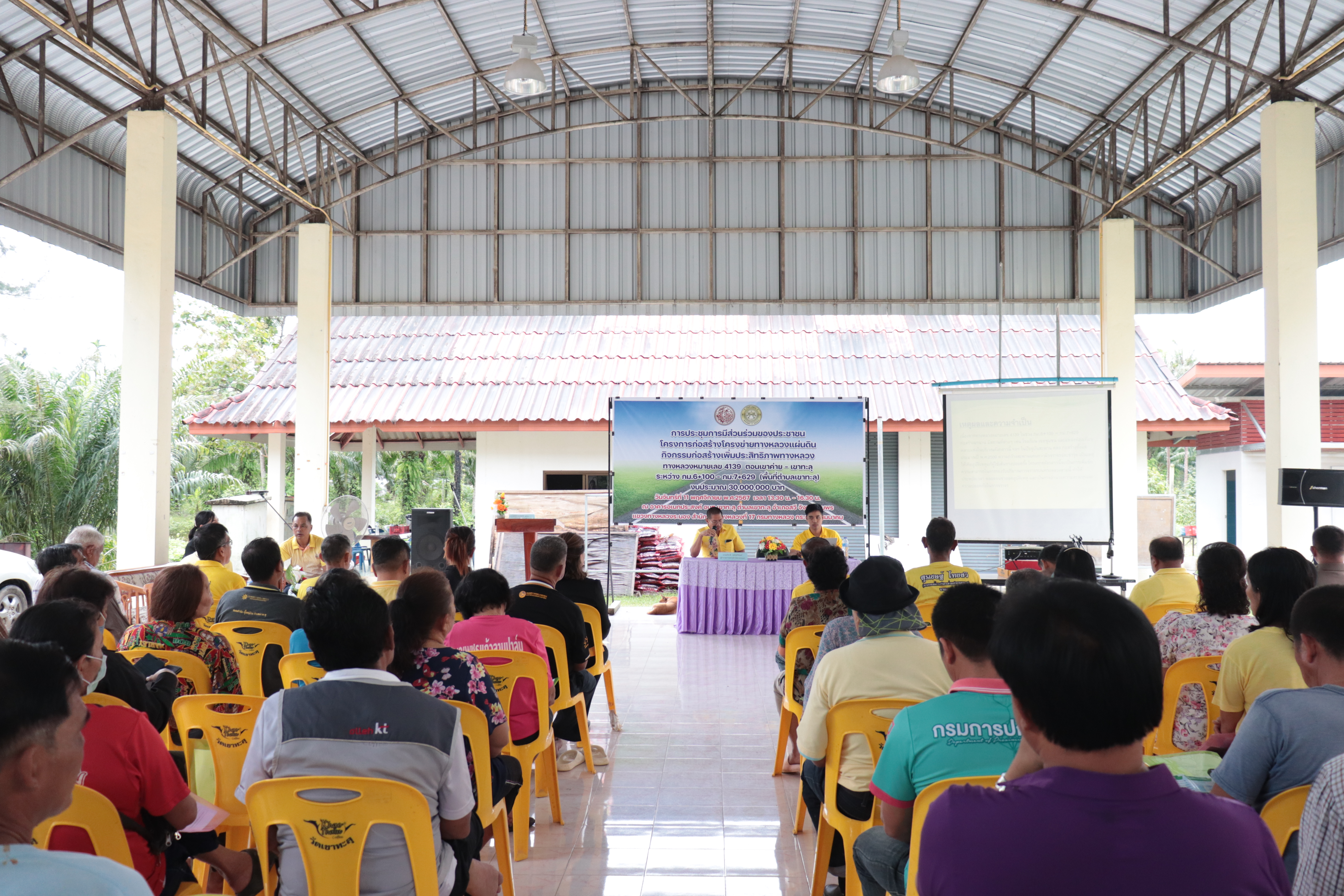 การประชุมการมีส่วนร่วมของประชาชน โครงการก่อสร้างโครงข่ายทางหลวงแผ่นดิน กิจกรรมก่อสร้างเพิ่มประสิทธิภาพทางหลวง ทางหลวงหมายเลข 4139 ตอน เขาค่าย - เขาทะลุ ระหว่าง กม.6+100 - กม.7+629 (พื้นที่ตำบลเขาทะลุ)