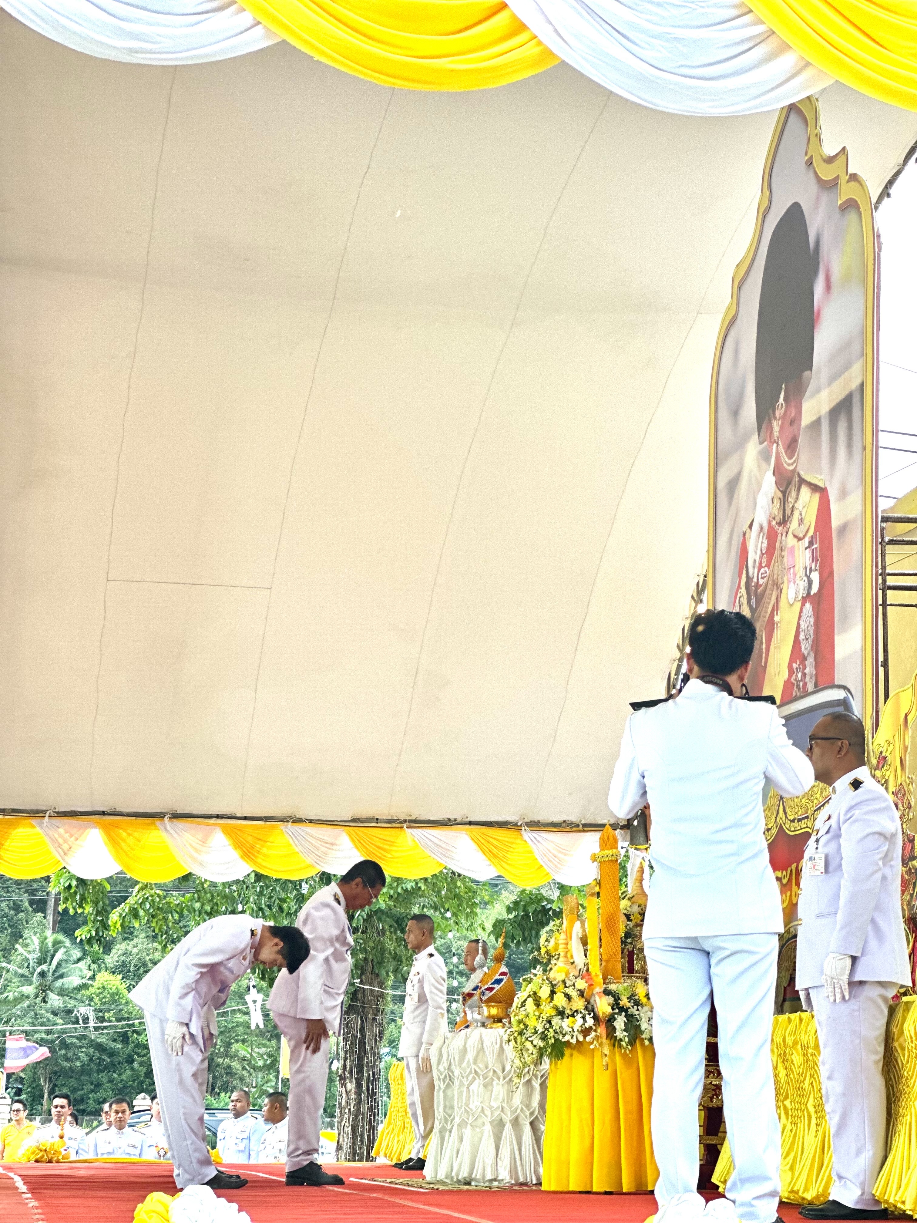 จากนั้นร่วมพิธีถวายเครื่องราชสักการะ วางพานพุ่ม และพิธีจุดเทียนถวายพระพรชัยมงคล