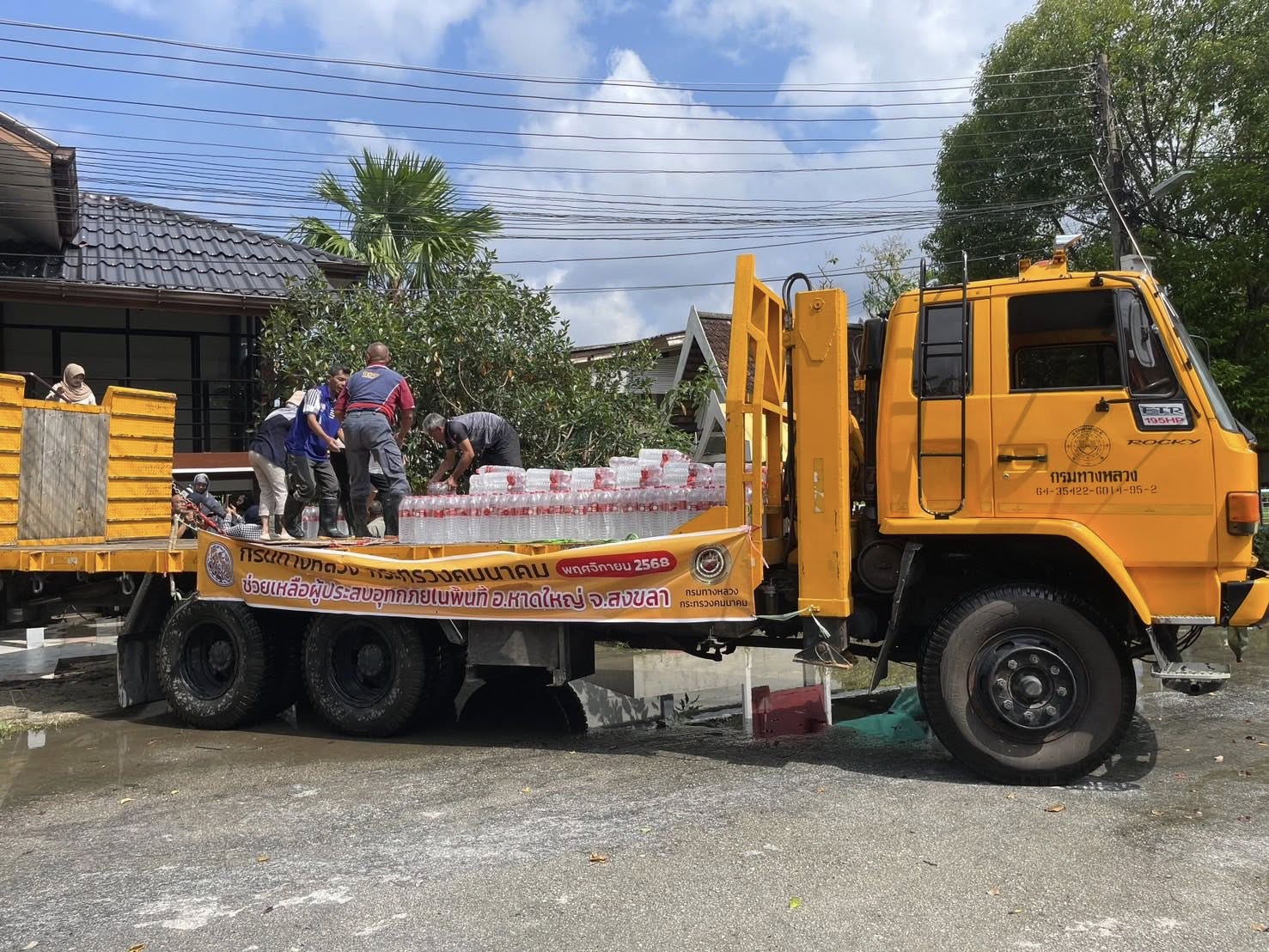 แขวงทางหลวงระนอง สนับสนุนรถบรรทุกเครื่องจักร และ รถติดเคลน สำหรับอพยพ เครื่องย้าย ช่วยเหลือในพื้นที่ประสบภัยน้ำท่วม อ.หาดใหญ่ จ.สงขลา และ จ.ปัตตานี