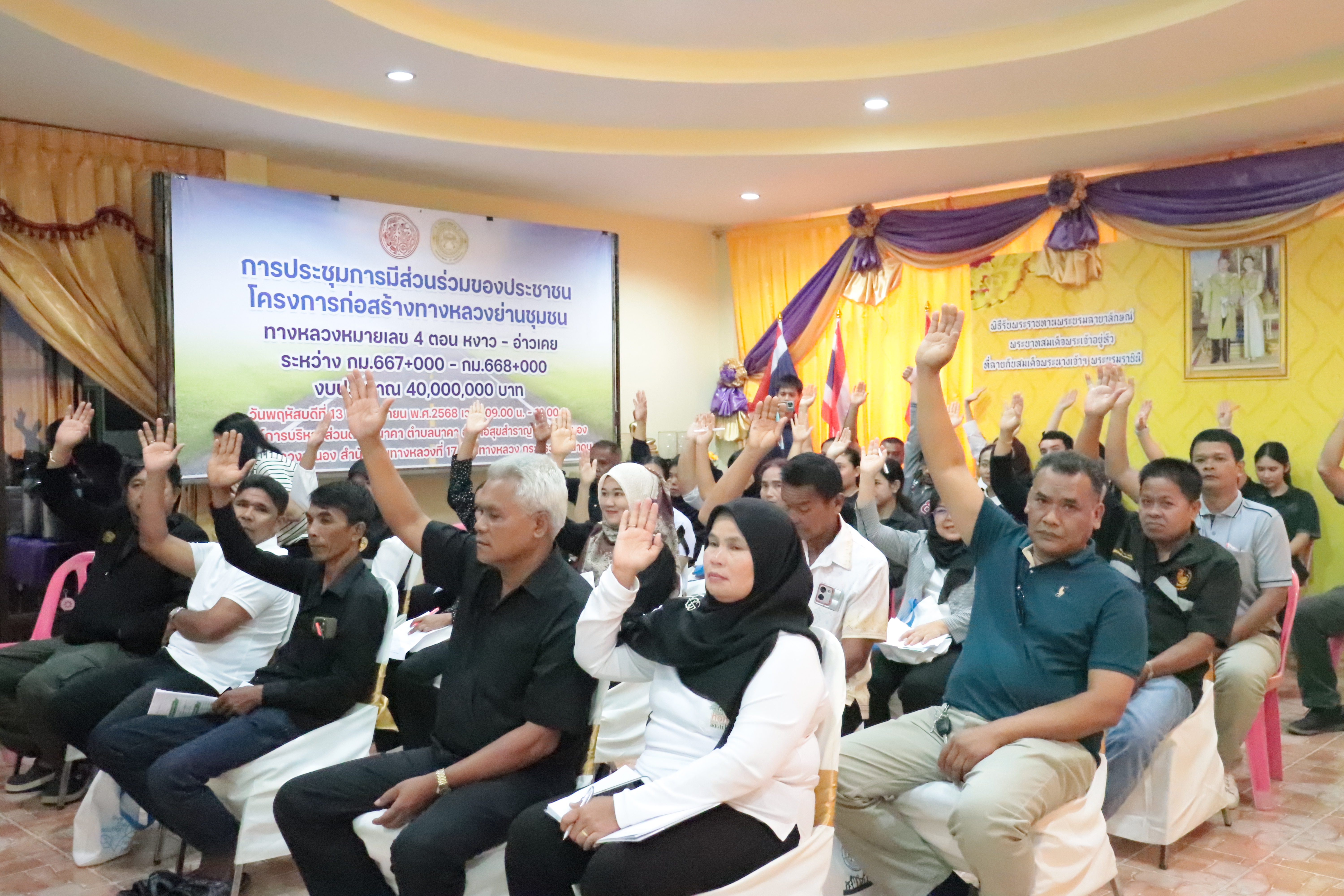 แขวงทางหลวงระนอง ดำเนินการประชุมการมีส่วนร่วมของประชาชน โครงการก่อสร้างงานก่อสร้างทางหลวงผ่านย่านชุมชน ทางหลวงหมายเลข 4 ตอน หงาว - อ่าวเคย ระหว่าง กม.667+000 - กม.668+000